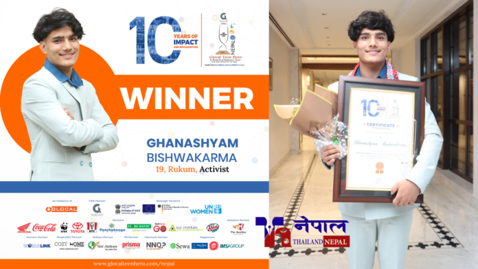 Kathmandu, Nepal – The 10th edition of Glocal Teen Hero Nepal has honoured Ghanashyam Bishwakarma as the 2024 winner for his exceptional contributions to child rights and social justice. At just 19 years old, Ghanashyam has become a prominent advocate for children and adolescents, making significant strides in various areas of social impact.
