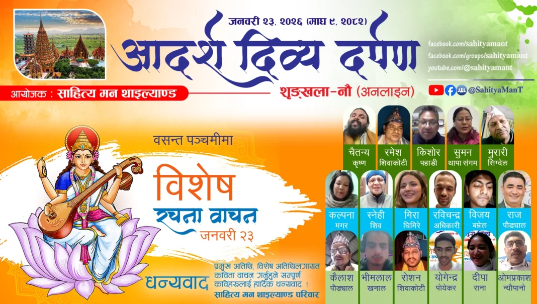 A grand literary and cultural program was organized in Bangkok by ‘Sahitya Man Thailand’ to celebrate the auspicious occasion of Basant Panchami and Saraswati Puja. The event, held on January 23, 2026, saw a significant gathering of literary figures and distinguished guests from Nepal, Thailand, and Myanmar.